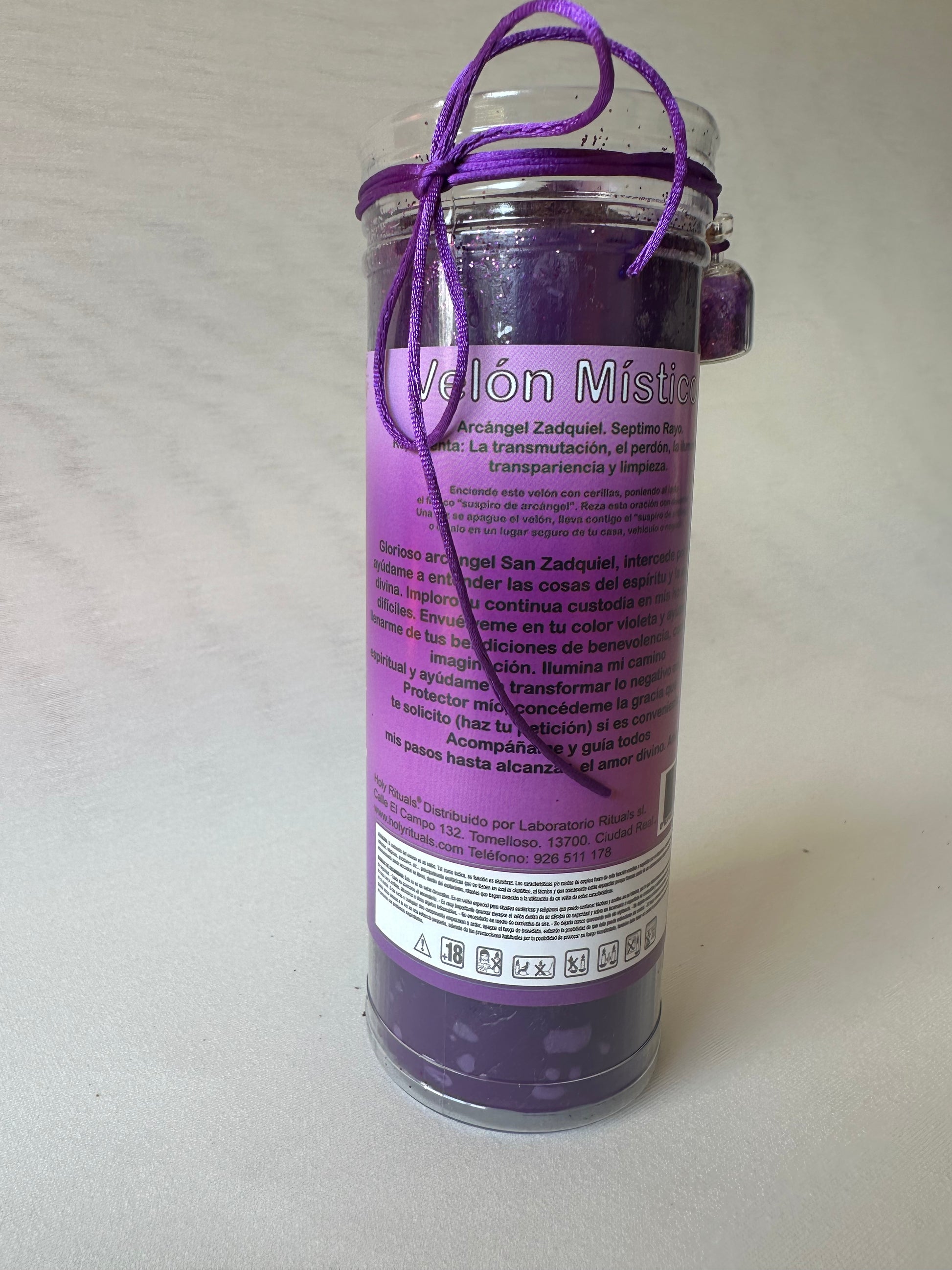 Este velón no es una simple vela: es una herramienta de poder espiritual, ritualizada con intención, fe y respeto, para canalizar la llama violeta del Arcángel Zadkiel y ayudarte a renacer energéticamente desde la paz y la pureza interior.