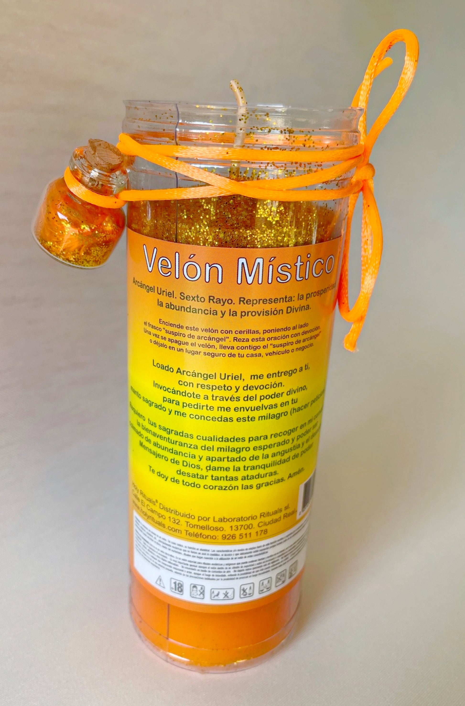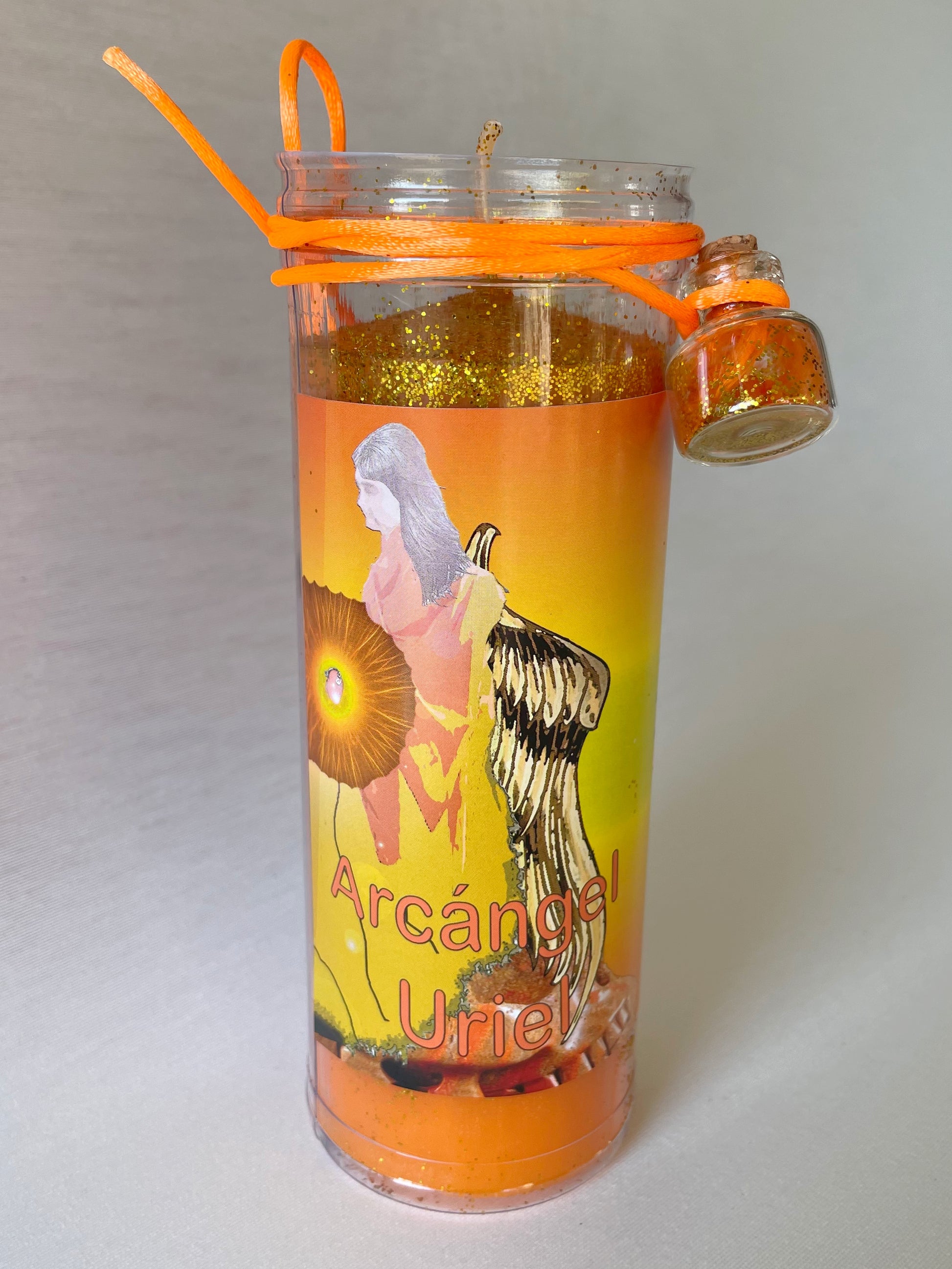 ✨ Cada velón del Arcángel Uriel incluye un frasquito de cristal llamado “Suspiro de Arcángel” y una oración para invocar su energía y realizar tu petición.