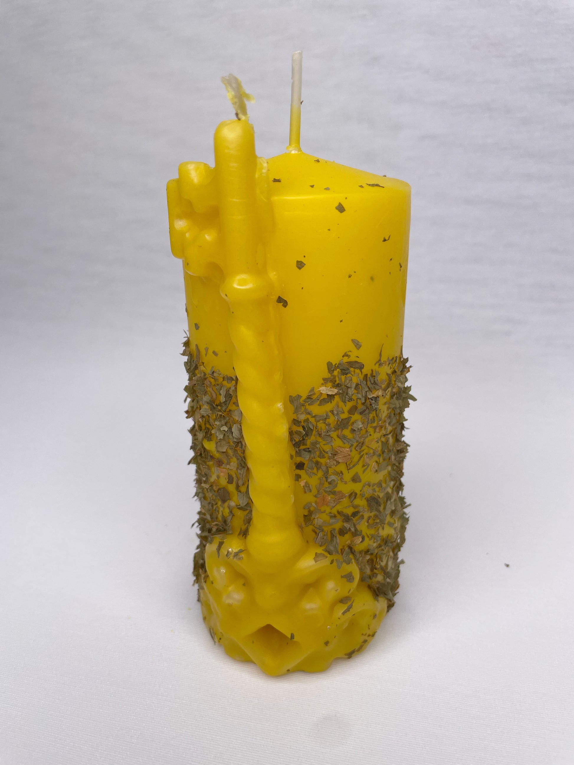 Abre los caminos hacia la abundancia con este poderoso velón amarillo ritualizado, preparado cuidadosamente con hierbas energéticas y el símbolo esotérico de la llave, ideal para desbloquear la prosperidad económica y atraer una corriente constante de riqueza y buena fortuna.